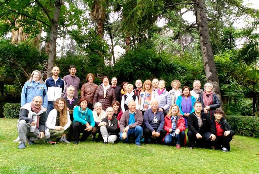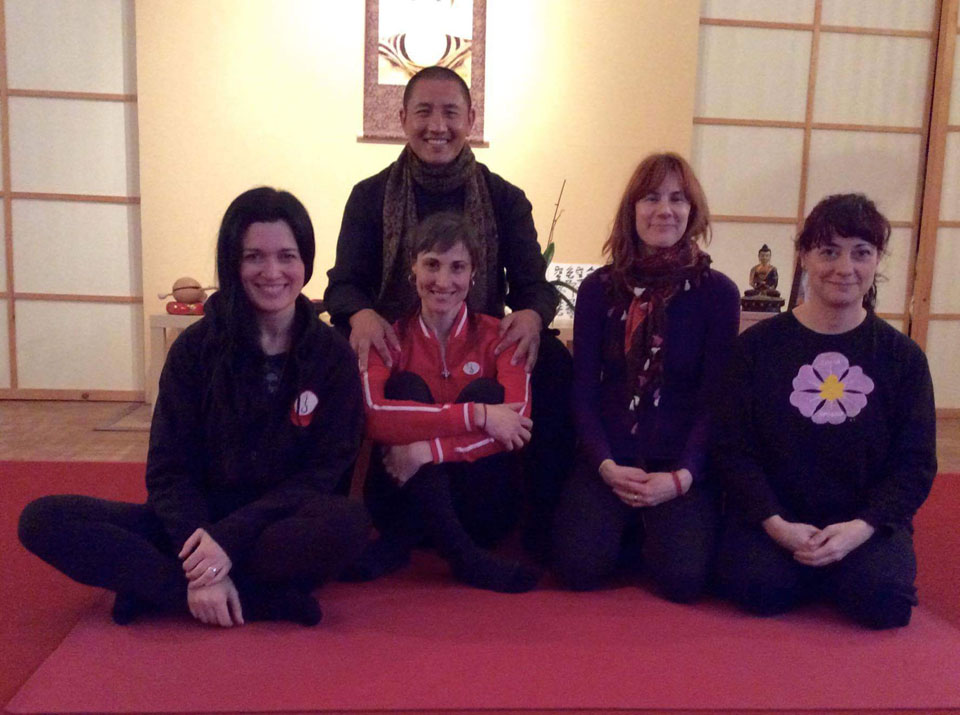 Profesores de Tog Chöd junto a Tulku Lobsang de izquierda a derecha: Imma Lizondo, Anna Alcaide, Marta Balanza (international teacher), Mª Isabel García, Núria Lao, y Pau, el representante más joven.