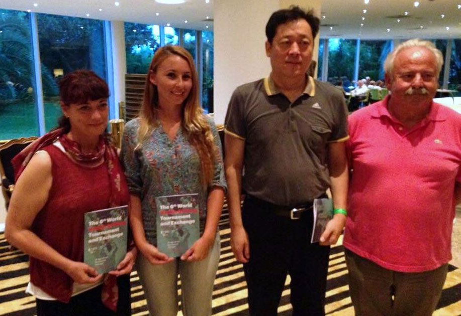 Directores de las entidades deportivas junto a la Sra He Xin, representante de Chinese Health Qigong Association, Maestro Li Jinlong, catedrático de la Universidad de Shanxi y Decano del Instituto de Educación Física de Shanxi y el Sr. Zhang Dong, director general de la administración general estatal de deporte de la Republicas Popular China.