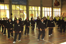 Los practicantes efectuaron simultáneamente una excelente exhibición en grupo de 7 formas de Health Qigong, plena de armonía, elegancia y plasticidad.