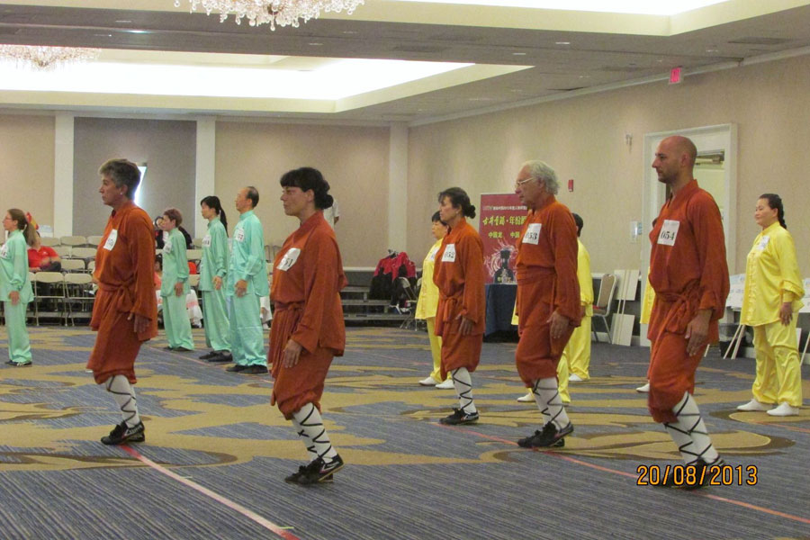 Concursantes de Salud Jingshen realizando Yi Jin Jing o cambio de músculo tendón