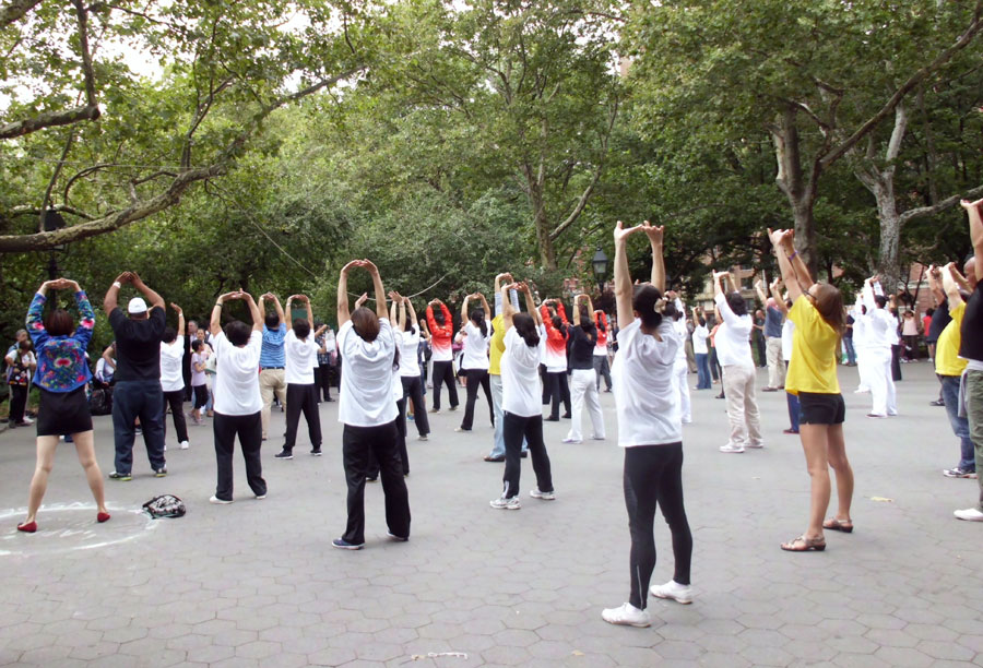 Tras la exposición, se realizaron diversos talleres y muestras de algunos de los sistemas de Health Qigong en el Wangshinton Square Park de NY.